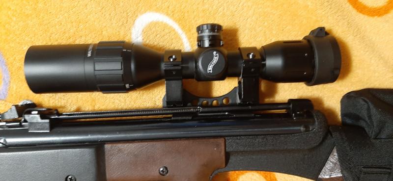 Fabriqué una pieza de aluminio de 6 mm. de espesor y pintada en negro para poder adaptar el visor Walther 4x32 mini DC que monta actualmente y utilizar el tubo cargador de balines sin que moleste el visor.