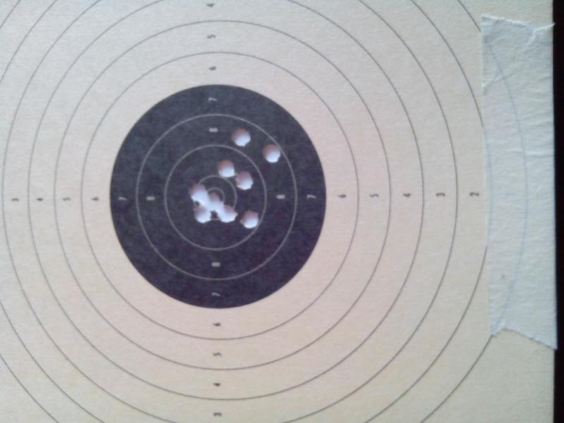 Aquí os dejo una foto de la diana resultante después de ajustar el alza, y otra con los balines utilizados.