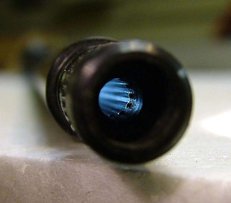 franciss escribió:anoke ola de nuevo recpecto a la mala fabricacion de la estrias se tiene que obsevar muy detenidamente y incluso los armeros no se dan cuenta . lo que udted puede hacer es coguer una linterna o leds de eso de los mecheros desbloquear el cañon poner el o linterna en el puerto de carga (por donde se mete el balin)y mirar a traves de boca del cañon (por donde sale el balin )y encontratras algun desperfecto ,te pongo alguna foto para que veas e que va la cosa