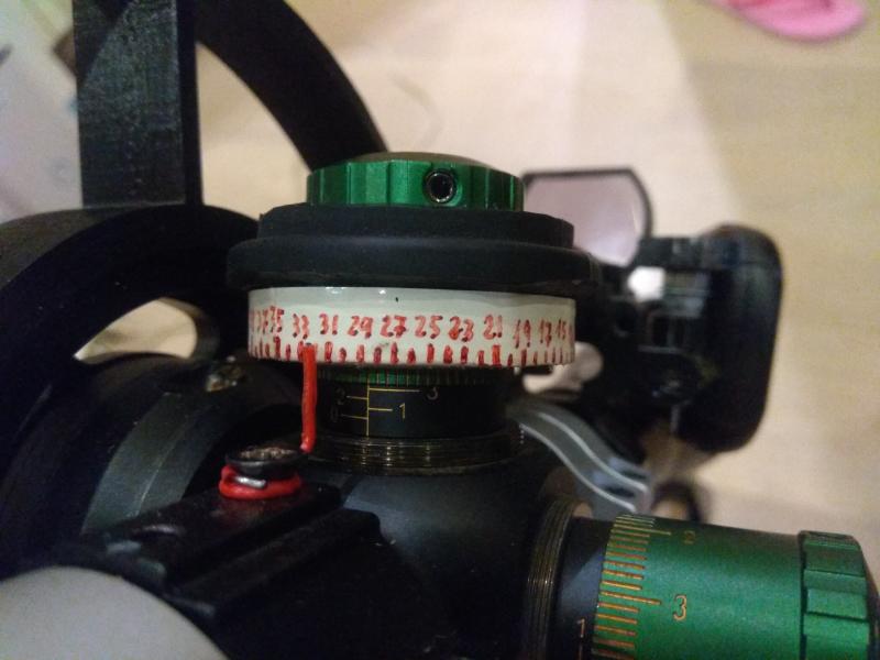 Lo que comentas de que te quedan apelotonados los marcajes de la rueda de paralaje, sí que es normal porque es un visor que discrimina muy bien las distancias y a nada que gires de más o de menos el paralaje ya desenfoca la imagen. Necesitarás una rueda sobredimensionada, la mía está hecha en impresión 3d, que sale económica y cumple a la perfección. El diámetro de mi rueda es de 17 cm y los marcajes de 45 a 50 metros están separados por tan sólo 1 mm, por lo que en una rueda de paralaje más pequeña ni siquiera te cabrían de lo juntas que estarían las marcas.
