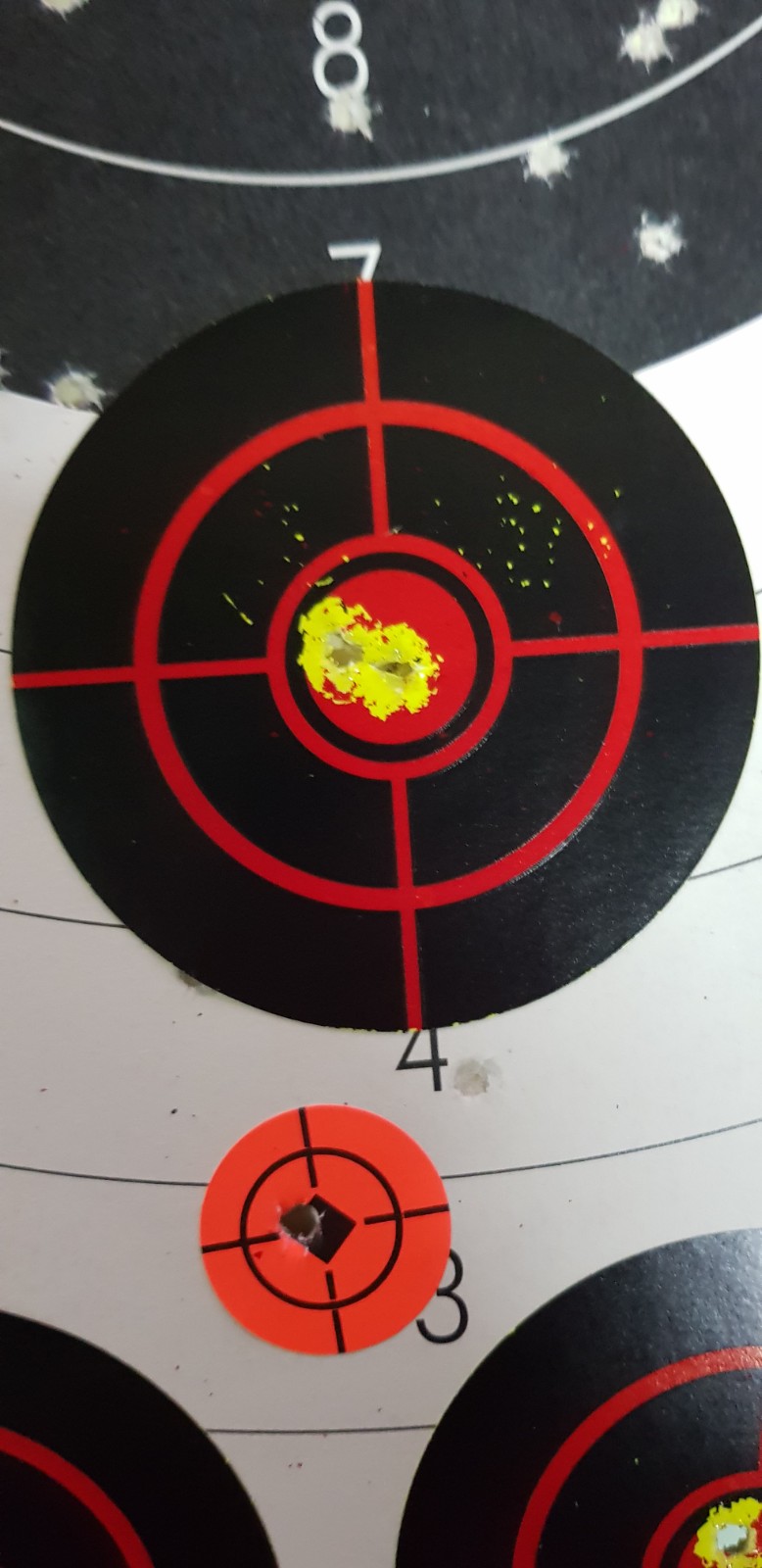 y esto un par de agrupaciones, en dianas de 3 pulgadas
