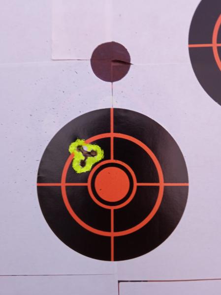 Para mi gusto es una muy buena diana contando con todo lo que mencionas, es una diciplina muy, pero que muy difícil, a 25 metros se puede hacer una agrupación muy buena, del tamaño de una moneda de 2 céntimos, pero meter balín tras balín sobre un punto de 2mm la cosa no es igual.