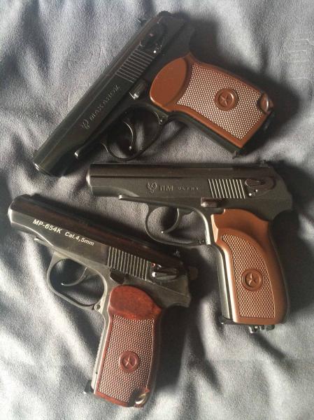 Aqui os dejo los tres modelos juntos, la Baikal MP654-K y las Umarex (Legends) Makarov y PM Ultra Blowback: