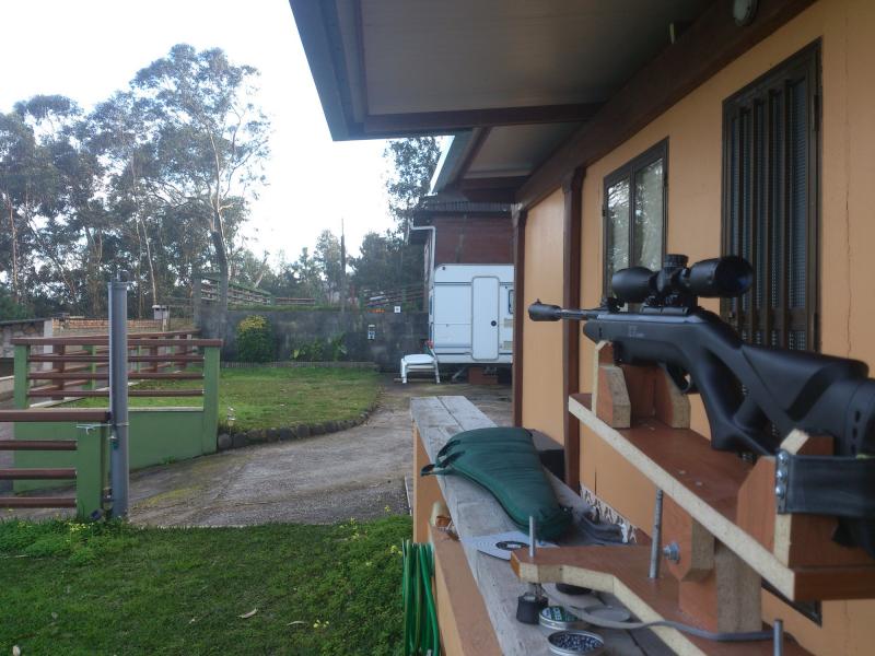 Bueno, pa cambiar un poko el ambiente, con tantas normas articulos y demas... aqui os dejo unas fotillos de donde disparo yo. la finca esta rodeada completamente x monte salvo x un costado q da al mar. desde donde tengo el banco cn mi carabina hasta la diana y las mondarinas ( esta tarde toco machacar mondarinas y abrir unas cuantas nueces) hay medidos 25 metros.