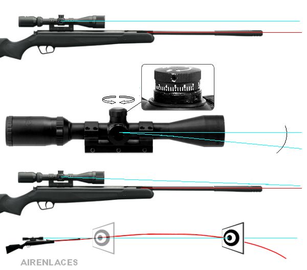 Si lo graduas a 10m, y tiras a 20m , el punto te quedará bajo y si lo