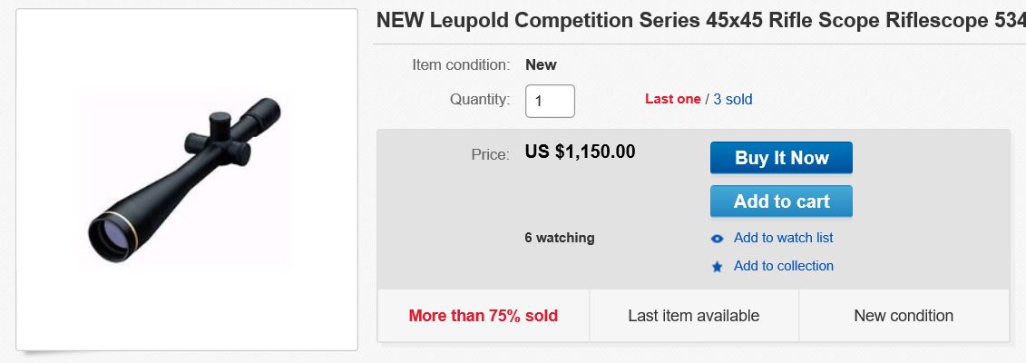 Eso de impuestos, aranceles y demás, hasta cierto punto, puedo llegar a entenderlo, pero de ahí, a que el mismo producto, cueste aquí el triple, no digo ya el doble, si no, el triple, a mi no me dan los números, y ya que hablamos de visores, otro ejemplo, un Leupold Competition, cuesta en USA, poco mas de mil dólares, y aquí, casi que los tres mil euros, y seguro que todo eso, es por impuestos, tasas, aranceles y demás......seguro que, que quien lo vende, no se lleva también un buen pellizco.