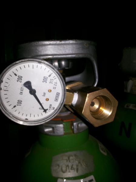 Por otro lado, mi club de tiro cuenta con una zona de aire comprimido donde hay un par de grandes botellas de aire. En su momento pensé llenar la carabina allí, pero un socio me dijo que esas botellas no dan la presión suficiente para usarla con mi carabina y no he comprado una estación de carga para ellas. Les he hecho un par de fotos y las adjunto para ver si alguien me da su opinión sobre si valen o no. Se ve en una de las fotos que pone 200 bares a 15 grados. En definitiva, a ver si lo tengo todo claro: necesito la botella de buceo o, si me valen, las botellas del club, una estación de carga y el latiguillo con el adaptador de la carabina que actualmente lo tengo en la bomba manual.