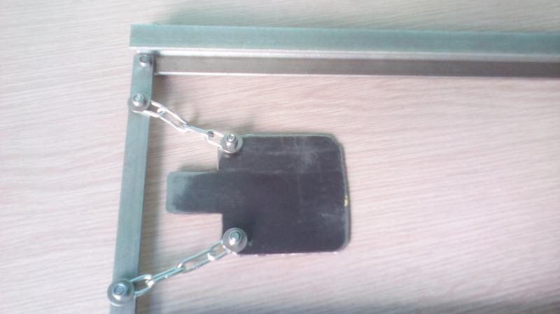 Es una pletina de acero de 2mm cortada con la caladora y el resto son agujeros con taladro y tornillos con roscas anti vibración, las patas de acero en V me las cortaron en el taller que las compre, le puse un sistema con palometa para poder plegar las patas.