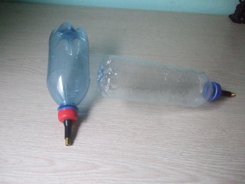 Son valvulas de neumatico, se le hace un agujero de 1,5cm mas o menos al tapon de la botella, se coloca la valvula y a inflar con la bomba de la bici, el sonido es bastante fuerte al impactar con el balin.