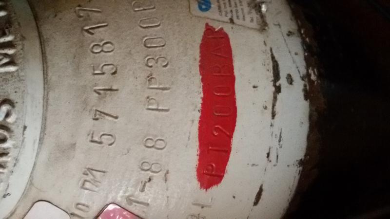 La botella pone ,o creo interpretar y digo creo, que es de 9 litros,que admite 300 bares y en rojo,si observáis,1200 bares ¿para prueba de presión en retimbrado?) ver fotos¡¡ de ahí, todas mis dudas de si esta botella se podría utilizar para este fin,obviamente cambiando la valvula,instalando su unidad de carga...