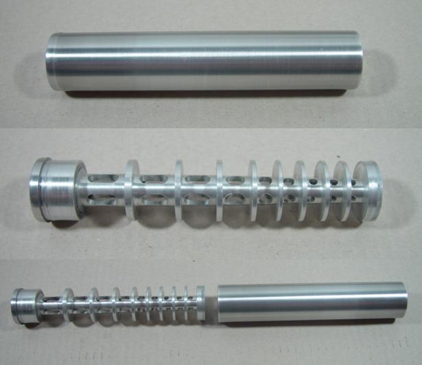 Otra solución, seria adelantar la funda del cañón, llevarla hacia adelante, para ganar espacio, y hacer unas cámaras con rulos del pelo, fieltro y unas arandelas, o algo mas sofisticado, como lo de la foto, una pieza a medida torneada.....