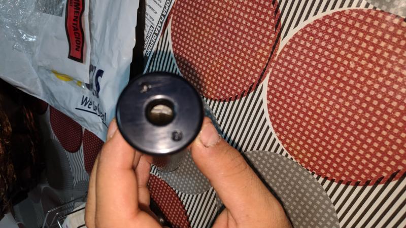 Este moderador presenta otro problema, mirando por la boca de fuego, se ve algo desformado (¿De que material es el interior?), No quiero abrirlo...pero si me dan permiso la gente de lobo airguns lo haré, para mandarles una foto en el caso de que haga falta....además presenta unos arañazos bastante visibles a contra luz en esa tapa y otro más en la otra tapa, y que decir de la báscula...en la especificaciones de este moderador dice tener un peso de 116 gramos...el mío ha echo operación bikini con un peso de únicamente 102 gramos, creo que un gramo, dos, pueden ser totalmente asumibles, pero...es el 15 o el 20% del peso total!!!!