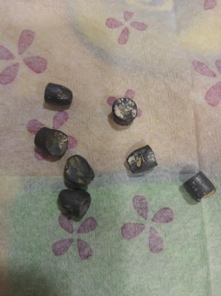 Algunos están bastante deformados y deteriorados supuestamente golpeados contra las piedras que había detrás de los cartones.