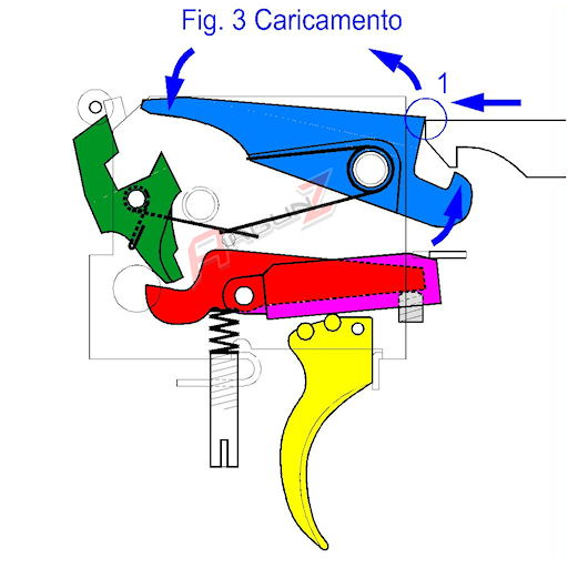 Pongo dibujos de funcionamiento del disparador de la HW 77.