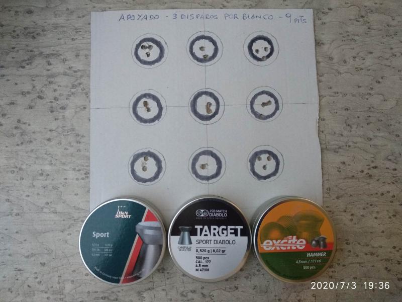 Hasta donde afectan cosas como la luz, si has de comido, levantado de la siesta.... La siguiente diana fue en días no consecutivos, a diferentes horas, con diferente luz (siempre natural), 9 MTRS, 3 disparos por blanco y apoyado.
