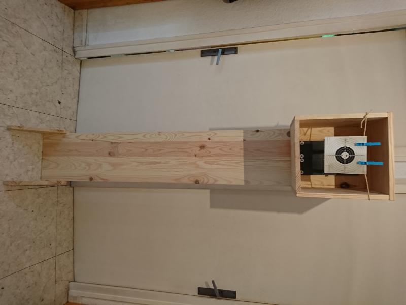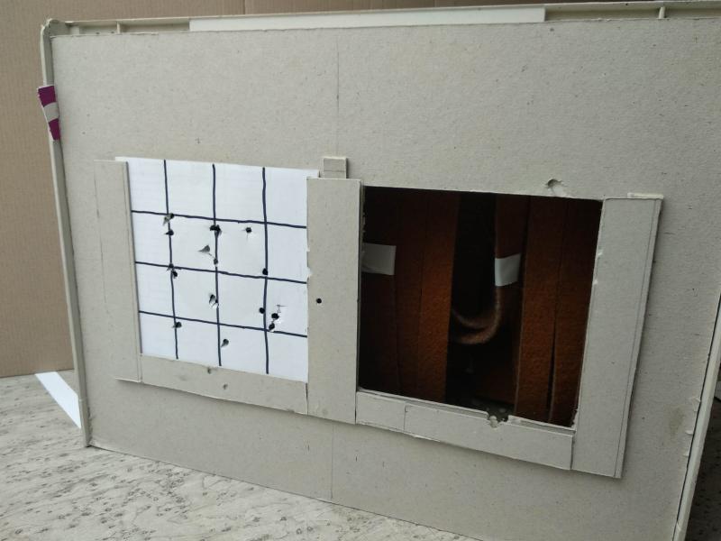 Mi conclusión es que lo mejor es un cajón de madera y al fondo plancha de hierro de 10 mm que ni se inmuta con los impactos