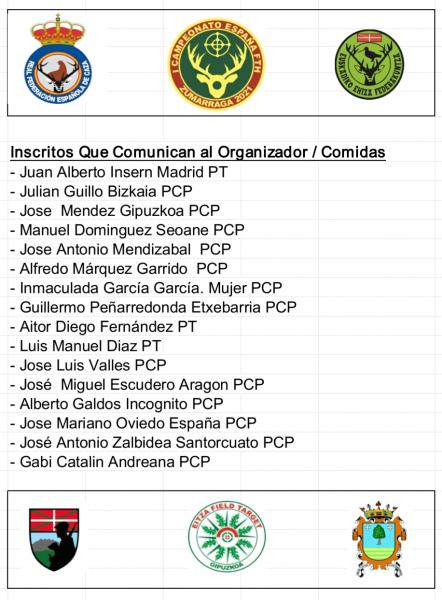 Este listado esta sacado de aquellos que después de enviar la inscripción a su Federación Autonómica, envían un correo al organizador indicando: