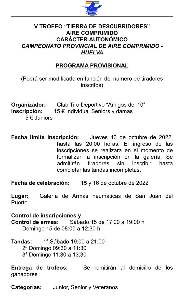 Aqui os dejo la convocatoria del VI trofeo Tierra de Descubridores por si os apetece asistir