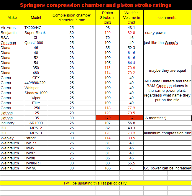 Re: carabinas de muelle , potencia y centimetros cubicos