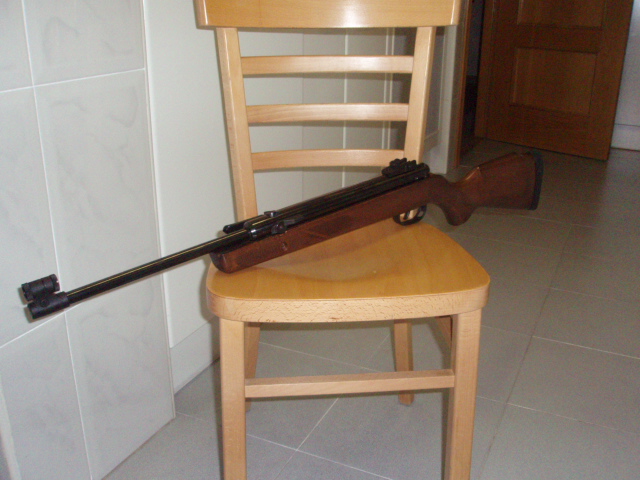 Así que intenté`poner remedio. El resultado es el que veis en la foto: La carabina fue montada en una bonita culata de madera de una Gamo Hunter de la última serie,(horas de trabajo para modificar la culata por dentro) las miras abiertas proceden del cajón de los restos y son de dos Nóricas diferentes. El conjunto ha quedado resultón y el tiro, con su nueva culata de madera de las de toda la vida, es mucho más agradable.