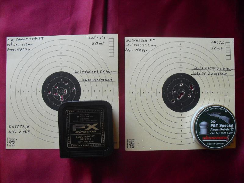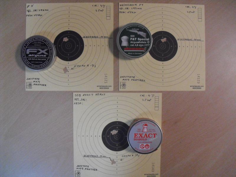 FX, Weihrauch F&T y el JSB Heavy ( de este último balín solo quedan algunas unidades en esta armería y no es facil de conseguir " el original " pero he querido incluirlo en las pruebas ya que su uso es muy popular ".