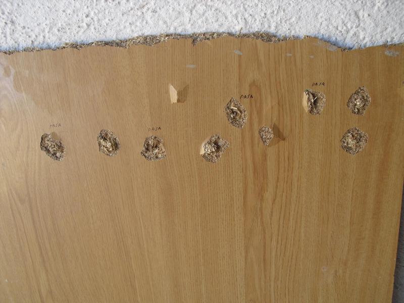 Para mi ha quedado claro ( por la penetración a 25 mt ). que el balín del cal. 5,5 transporta mas energía terminal que el del 4,5 ya que fueron muchos mas los que atravesarón la tabla.