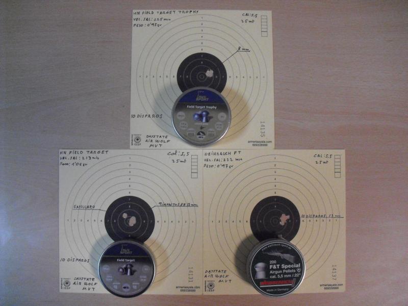 Las armas utilizadas han sido : en cal. 5,5 una Daystate Air Wolf MVT y en 4,5 una Daystate MK4 Panther.