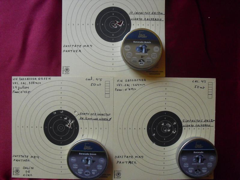 Quiero destacar el INCREIBLE comportamiento del balín : HN Barracuda Match. Era como si no le afectara el viento que desviaba a todos los demás. Fue el único que hizo un cacahuete a 50 mt.