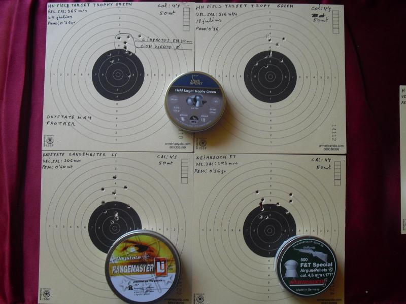 Mencionar que hubo un solo balín del 5,5 que traspasó por completo la tabla a 50 mt : El Daystate Rangemaster li.