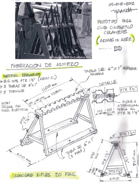 A tus carabinas no les va a pasar nada por dejarlas apoyadas contra la pared, no se van a doblar. Pero desde luego no es el mejor modo de guardarlas. Se pueden caer fácilmente y dañarse. Los maletines rígidos están bien para guardarlas (mejor en posición horizontal y sobre la parte ancha del maletín) y transportarlas, mucho mejor que las fundas de tela y espuma. Si lo que quieres es tenerlas en un rincón de casa de forma vertical puedes hacerte con cuatro tablas y un poco de maña un armero casero, de forma que queden bien aseguradas y no puedan caerse y golpearse. Te pongo unas imágenes de algunos hechos por compañeros para que te hagas una idea de lo que digo. El acabado final dependerá de lo exigente y curioso que seas. A los diseños de las imágenes primera y última habría que ponerles unos pestillos como los que llevan en la imagen segunda para asegurar las carabinas, de forma que no puedan caerse accidentalmente.