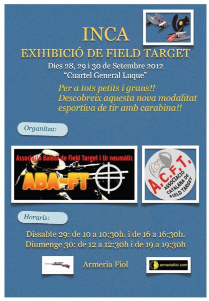 En el transcurso de esta feria y como complemento se celebrarán demostraciones de Field Target (ver cartel en imagen adjunta) a cargo de la Associació balear de Field Target junto con con la Ass. catalana de Field Target.