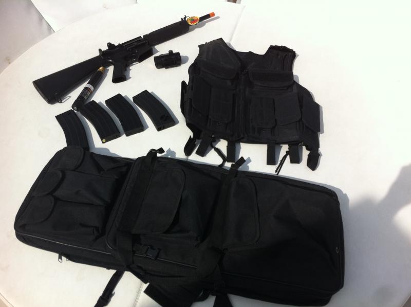 Lo que tengo son dos equipos completos con bolsa, chaleco, 4 cargadores y recambio de aire comprimido.