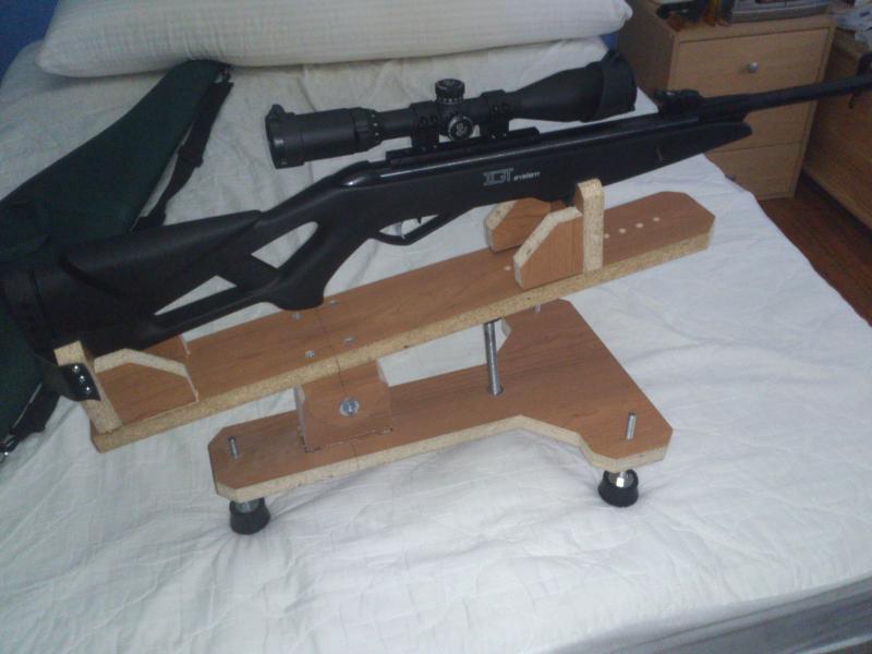 Recientemente he adquirido una carabina y como soy novato y todavia me muevo mas q una viejecita cn parkinson al disparar... Para centrar el visor y ya de paso para mantenimiento, limpieza etc... Y mirando algunas fotillos x la red, me he montado este banquito de tiro casero, a ver que os parece.