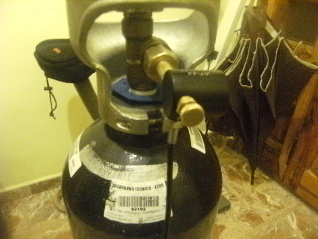 Por fin¡¡ tengo mi botellón de nitrógeno ,y con adaptador incluido , el que vale vale , mi amigo J. Maria se ha portado de cine y me lo ha sacado del de una at44 , ya lo he catado con un sumatra a 200b