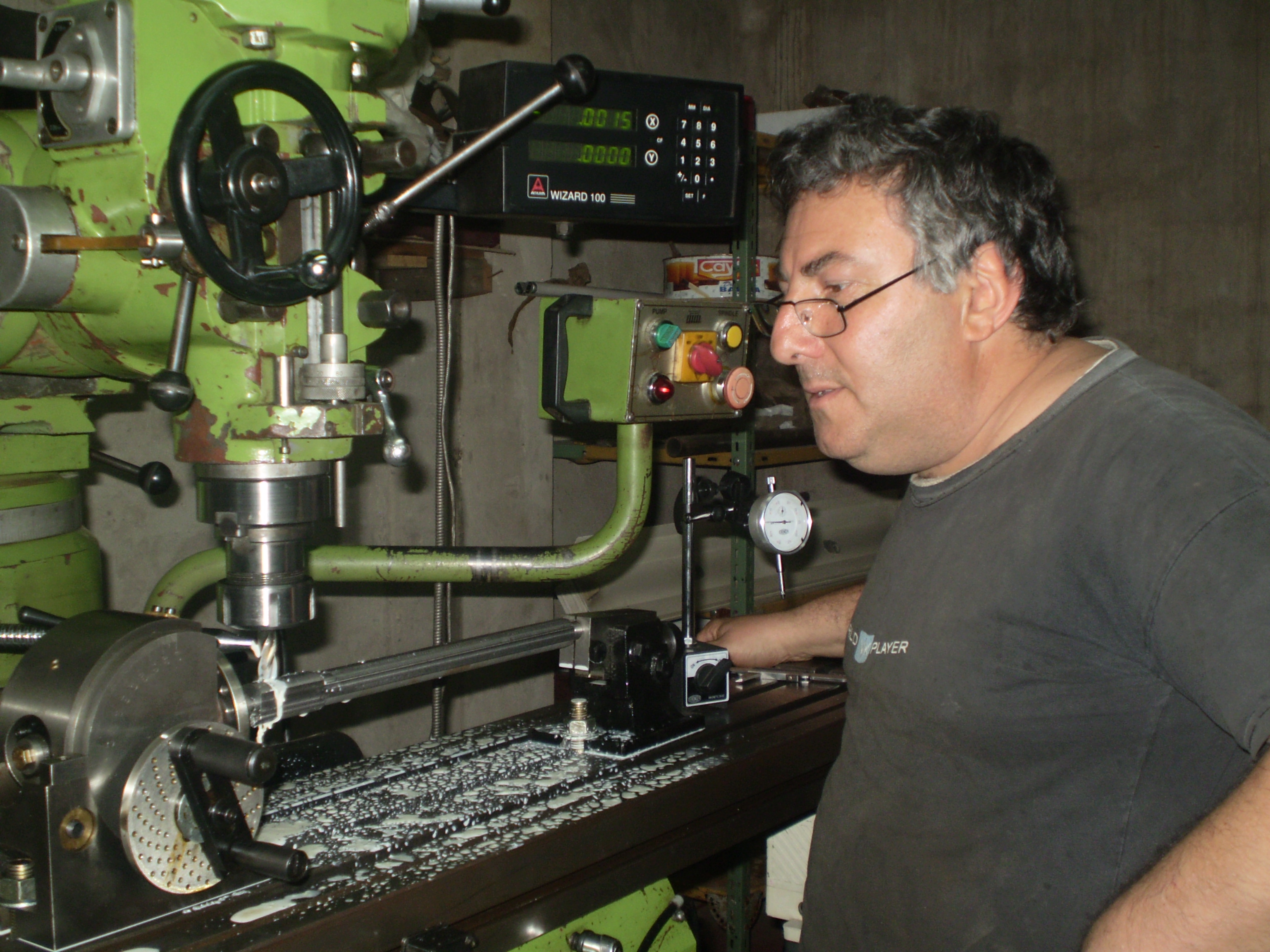 Aquí les presentamos una de las maquinas que utilizamos en nuestro taller para desarrollar nuestra producción, esta en particular es una fresadora de torreta con su plato divisor para hacer octogonales los cañones de nuestras armas de avancarga.