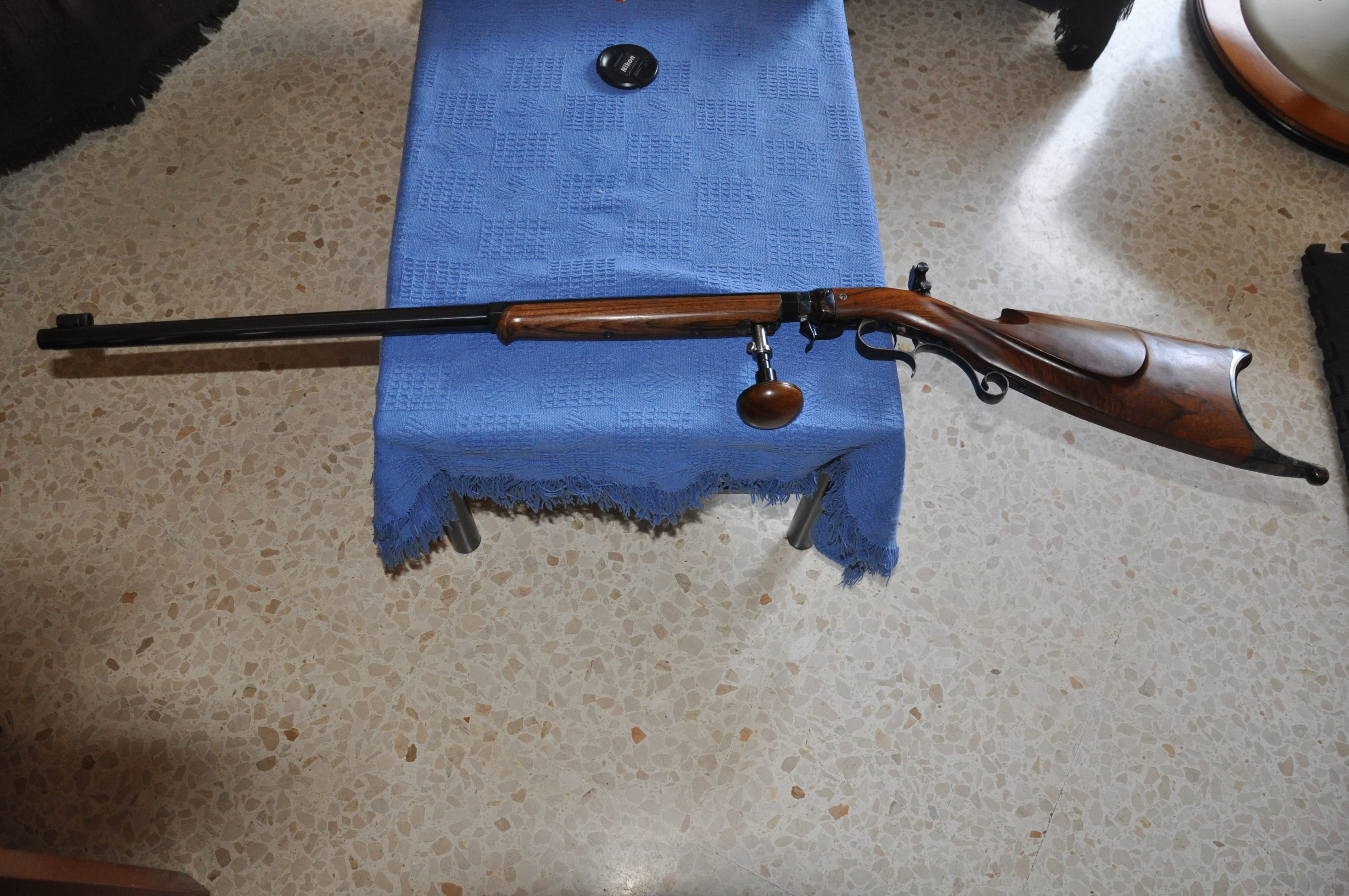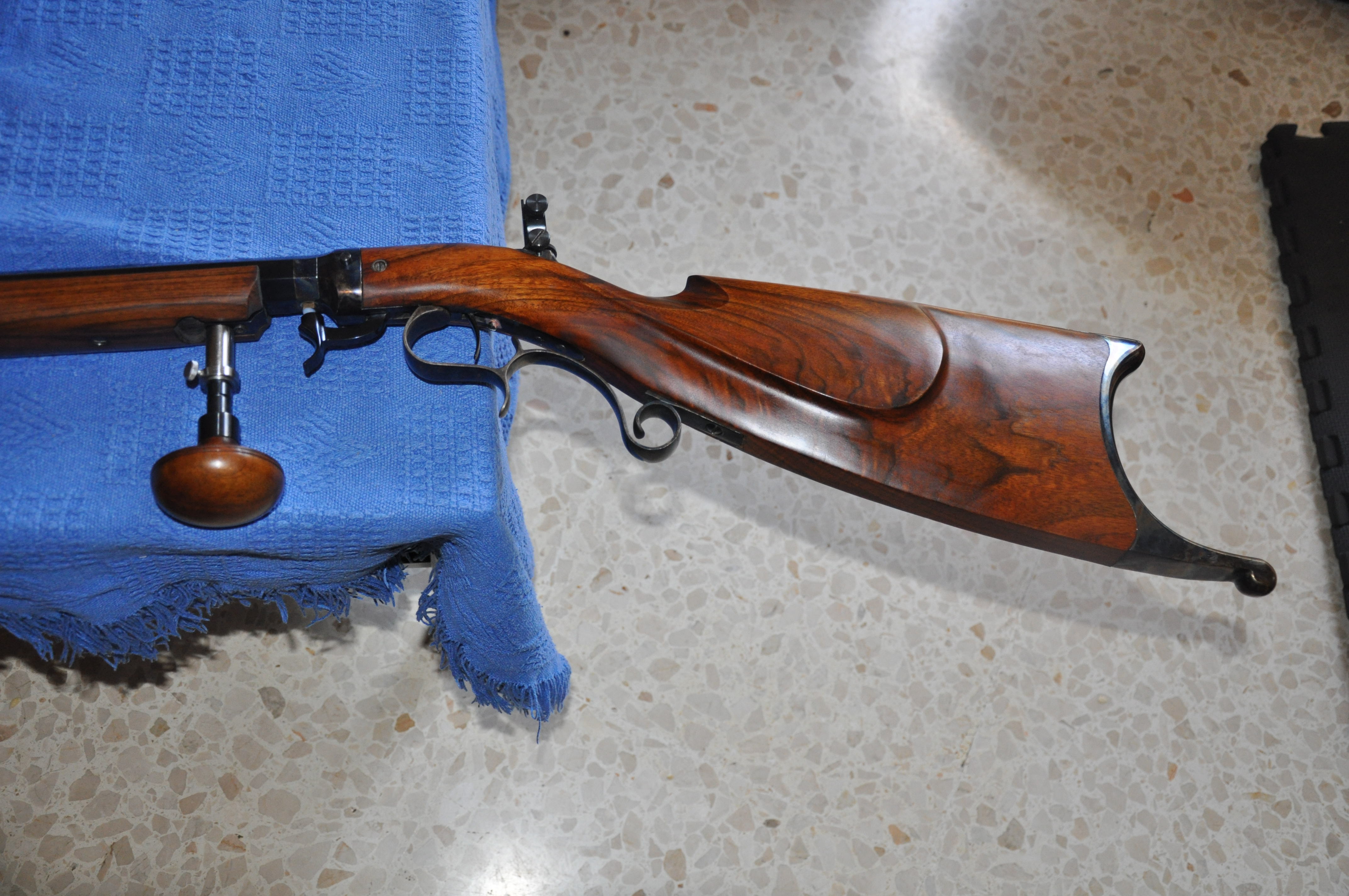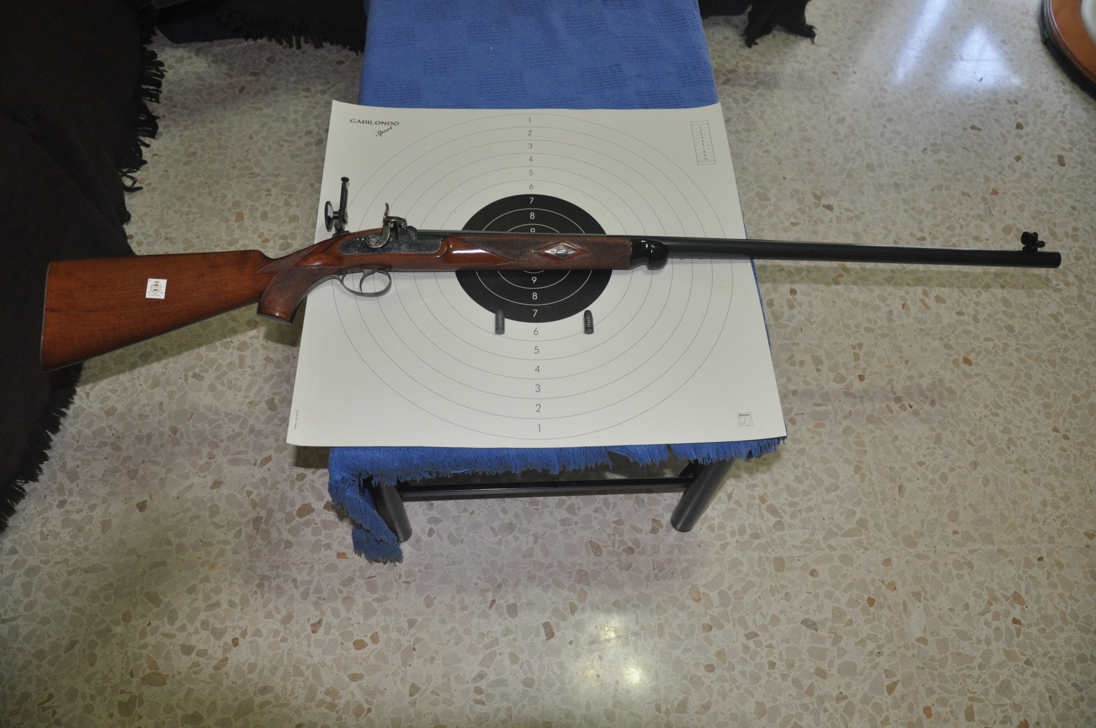 Con el arma larga que mas me apetece tirar es con este jager de caza de Lorenz Bössel in Suhl es un calibre 14mm. y estriado poligonal octogonal, se encara perfectamente y para mis años el peso es lo que mas me cuesta soportar, las agrupaciones son excelentes y tiro con el en Vetterli aunque no es el arma idonea.