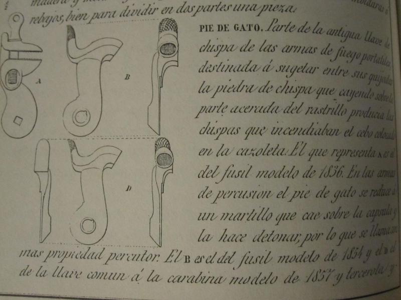 Hay centenares de referencias que serían para aburrir: el término Pie de Gato se aplica siempre a esta parte de las llaves de chispa. Los coleccionistas de hoy día (no todos) a veces se aferran a malas traducciones, sobre todo del inglés, aunque como hemos visto también del italiano. Solamente pretendía contribuir a hacer más correcta la siguiente del francés, pero lo cierto es que yo no soy el traductor así que aporto solamente un pequeñísimo granito de arena que al final ha parecido ser la china en el zapato de alguno.