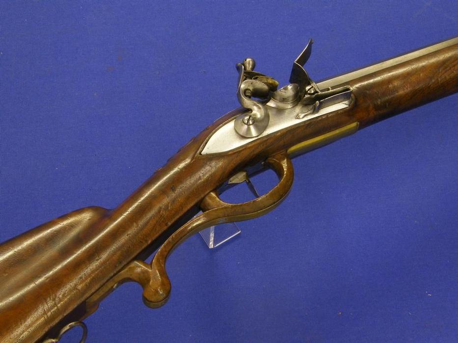 Un buen fusil aleman en chispa, del siglo XVIII , firmado por LINDENSCHMITT en Maguncia (Mainz) anima lisa de calibre 15 mm, longitud 120 cm(?) en perfecto estado. Precio 2,850 euro.