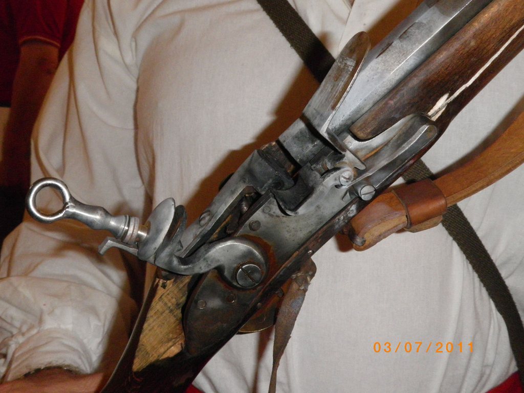 COMO BIEN DICE , mi amigo jeremiah, es un mosquete mod. 1757 de ARAL, " NO ES DEL ROJO ", efectivamente ese dia se estaba disparando con una carga de 80 grains , bola cal.69 y sin calepino , el motivo de este destrozo ¿¿?? , pienso que una mala calidad en materiales o en fabricacion , alli se hablo de fatiga en el acero, pero lo que si que es cierto es que este mosquete en concreto habria hecho en su vida no mas de 100 disparos con bola , si mas de 1000 ,pero solo con polvora ,en recreaccion ,solo salvas.
