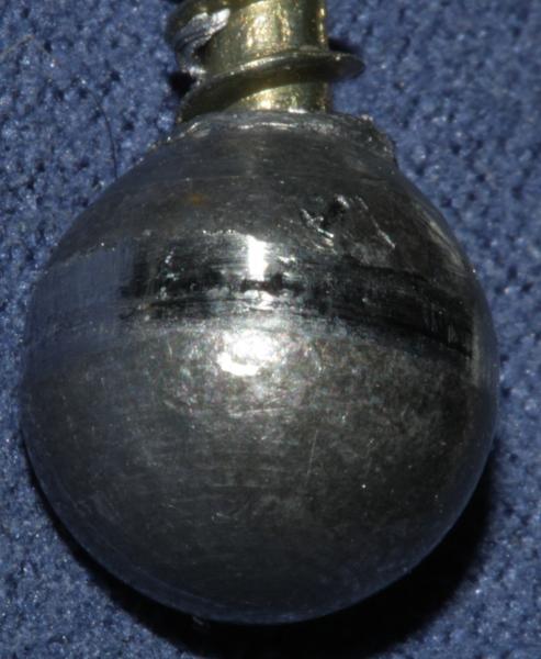 Primero hice pasar una bola del .454 por el cañón. El diámetro del cañon (fondo de estrías) resultó ser de 11,53mm