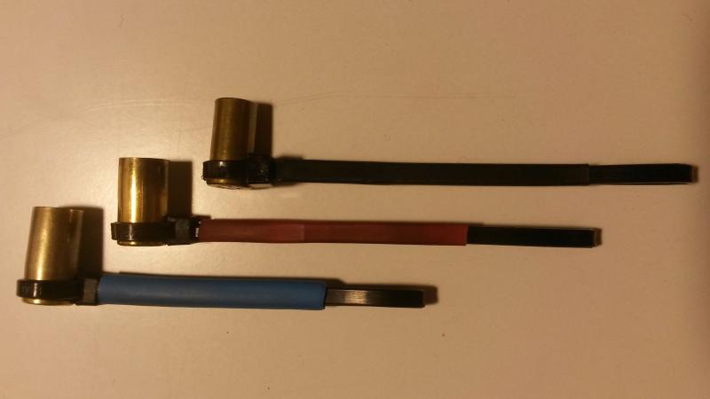 JordiAMX escribió:Me he hecho un par de dosificadores, tomando como ejemplo los que puso un miembro del foro. Los míos son infinitamente más cutres, pero efectivos. Uno es una vaina del 9 Largo (18'58 grains) y el otro una vaina del 7'62x51 cortada para que entren 38 grains. Unas alcayatas, unos tubillones, y un poco de estaño. A ver si consigo vainas del 38 Special, 357 Magnum, 222, etc, y hago algunas más.
