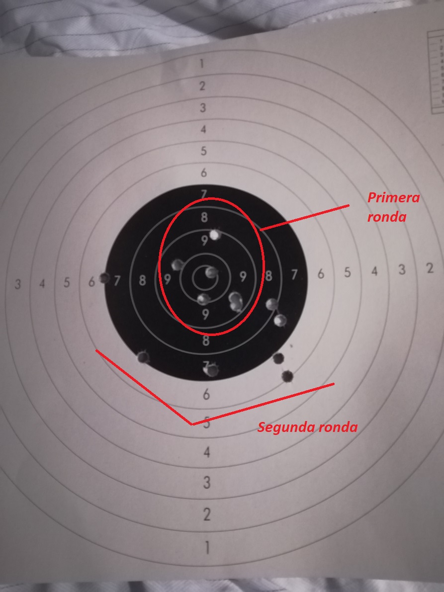 Hola, como alguno ya sabréis soy novato en avancarga. Tengo un Kentucky de Ardesa desde hace un mes y me ocurre algo que no entiendo. Empiezo con disparos bastante centrados y de repente al quinto o sexto empiezan a caerme. No varío la carga en nada, 55 grains de suiza nº 2 y un casquillo del 38 especial de sémola. Disparo de pie a 50 m. Si limpio el cañón recupero algo de altura pero al siguiente otra vez me quedan bajos. Hay alguna razón técnica para que ocurra esto o simplemente soy yo que pierdo la concentración o el encare?
