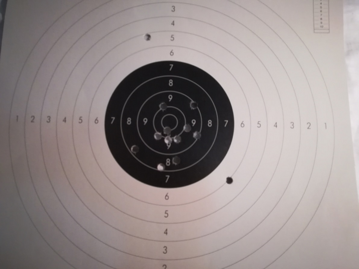 Pues precisamente es lo que he hecho hoy, tirar sentado con el saco de tiro y parece que era cosa del indio y no del rifle. El tiro de arriba ha sido el de ensuciar el cañón, despues apuntando al centro de la diana he hecho los ochos, así que he apuntado un poco más alto y ya me he metido en el 9. El tiro de abajo ha sido una carga más pequeña que he puesto. Así que a practicar y practicar para hacer lo mismo, o mejor, de pie.