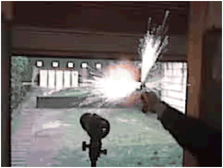Seguro que muchos de los tiradores de la epoca perdieron un ojo en algun disparo con semejante proyección de particulas.