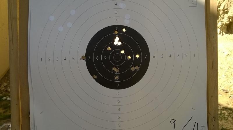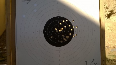 Como se trataba de ver como agrupaban no he corregido y la agrupación es prácticamente igual a las conseguidas con las ligeras en otras condiciones. Por cierto que la luz ya había mejorado al desaparecer el sol directo en parte del blanco.