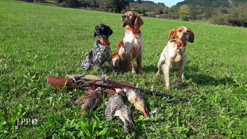El día empezó bien y creo que termino mejor, la cachorra un poco despistada al principio pero asentándose a medida que transcurría la mañana y yo, pues creo que bien, con mucho sufrimiento, el monte está muy muy sucio y mira que he cazado años en Galicia, esto ya se empieza a parecer a aquello, maleza, zarzales, toxos y algunas xestas dificultando aún más la jornada, lo bueno por apuntar algo, peones largos haciendo trabajar a los perros y la caza sujetándose bastante. Pude sacar cinco pajaros bajando tres y fallando dos, que aunque crei correr bien la mano se me quedaron traseros los tiros. Con el arma muy agusto, 4F para la cazoleta, 50 grs de 3F de carga, taco fieltro, 35 gramos de perdigon del 7 y tapeta carton. Dejo unas fotos y a por la próxima. Saludos.