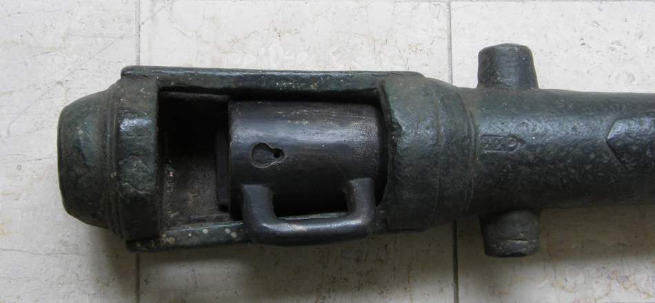 Este es un raro, por escaso, cañon de 2 libras de retrocarga holandes del siglo XVII con la marca de la ciudad de Amsterdam ( "XXX" Esta es la marca de Amsterdam).