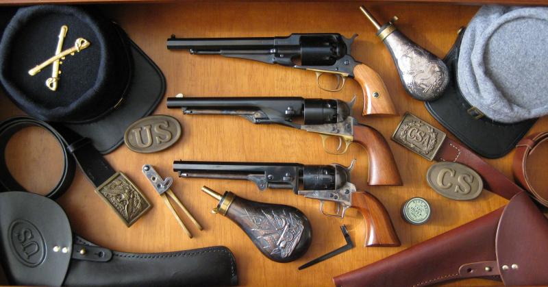 Aquí tenéis mi última presentación de la Civil War, con mis tres niñas: Colt Navy 1851 Second Generation (Colt, no réplica), Colt Army 1860 Centaure y Remington 1858 New Model Army de Santa Bárbara.