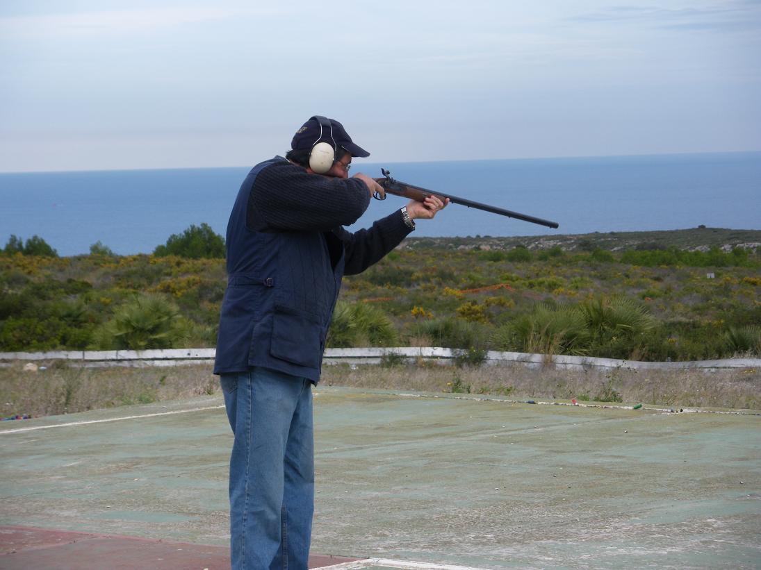 5ª-Otro tirador que no pudo resistirse a probar la avancarga. En este caso, aunque el tirador es zurdo rompió plato y dijo que era un arma que no le resultaba incómoda como las modernas que tienen la ventaja más acusada y sí se nota.