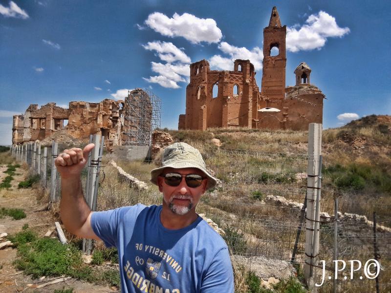 Sobre las 11,oo h llego a Belchite, me dirijo al pueblo viejo y aunque no tengo tiempo para la visita guiada, tomo unas fotos desde el exterior de la valla y me hace pensar por su estado el no poco sufrimiento que padecerían sus habitantes en la guerra civil.
